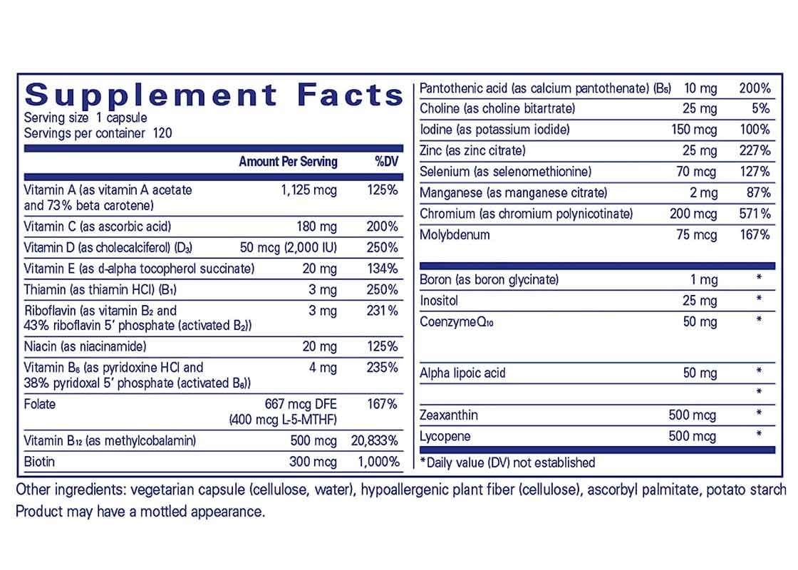 Multivitamínica para Mulheres e Homens: cápsulas de uma vez por dia fornecem vitaminas A, B, C, D e E em formas altamente biodisponíveis; CoQ10, L-5-MTHF e ALA para suporte antioxidante.
