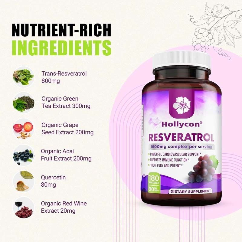 Ingredientes de alta qualidade: Combina o trans-resveratrol da noz-moscada japonesa, chá verde, semente de uva, quercetina e fruta de Acai para uma poderosa mistura de polifenóis.
