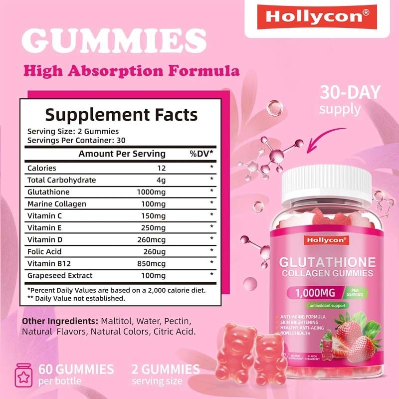 OEM Glutationa colágeno gummies Suplemento para clareamento da pele Glutationa colágeno gummies