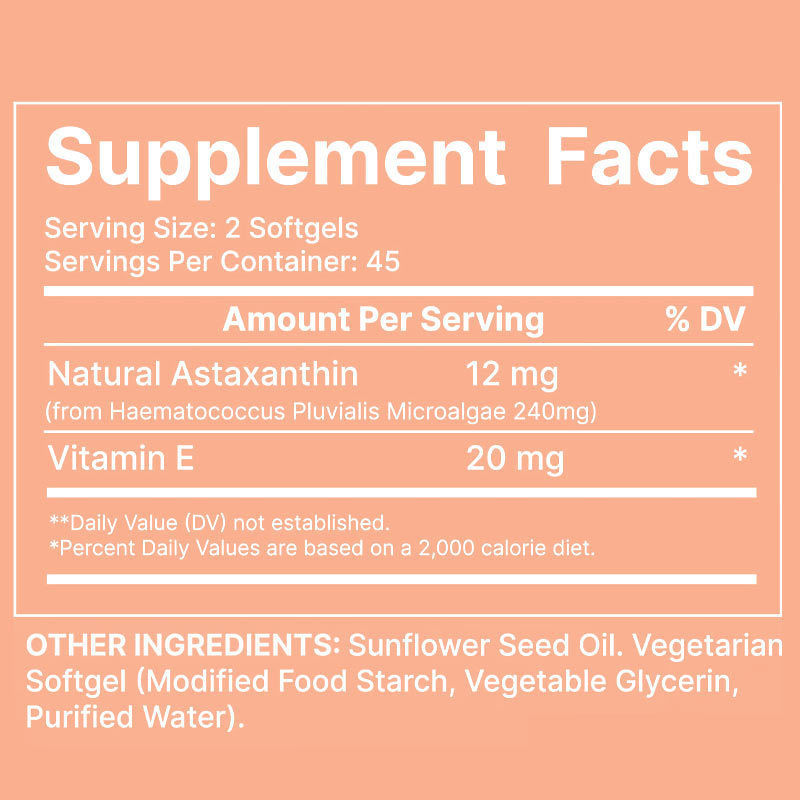 12 mg de astaxantina natural + 20 mg de vitamina E criam uma rede antioxidante lipídica solúvel para 3 vezes mais proteção.