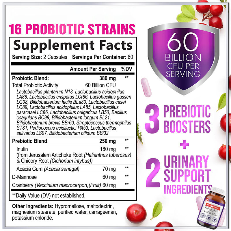Fórmula de Probióticos para Mulheres Premium: Os nossos probióticos para mulheres são enriquecidos com prebióticos e cranberry para maximizar a eficiência.Estes probióticos para mulheres ajudam a manter a saúde urinária, a flora vaginal e o equilíbrio do pH.
