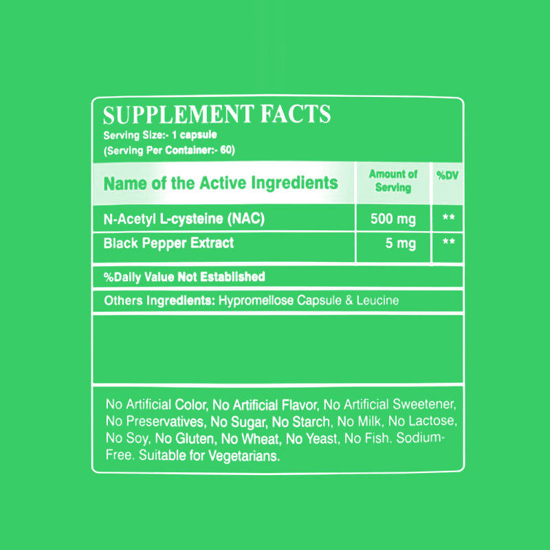 Reforçado com extrato de pimenta preta: formulado com 5 mg de Piperina para otimizar a absorção de NAC, garantindo o máximo benefício em cada dose.