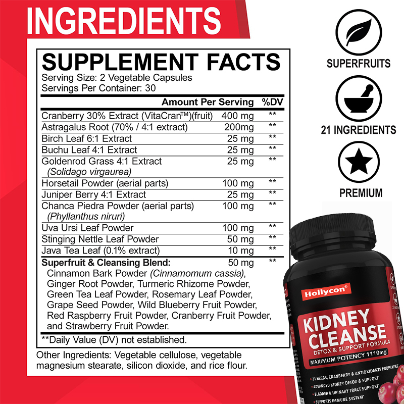 A fórmula natural da Hollycon de ervas de extrato estimula uma desintoxicação premium para suporte adequado e eficaz da bexiga e função renal saudável.