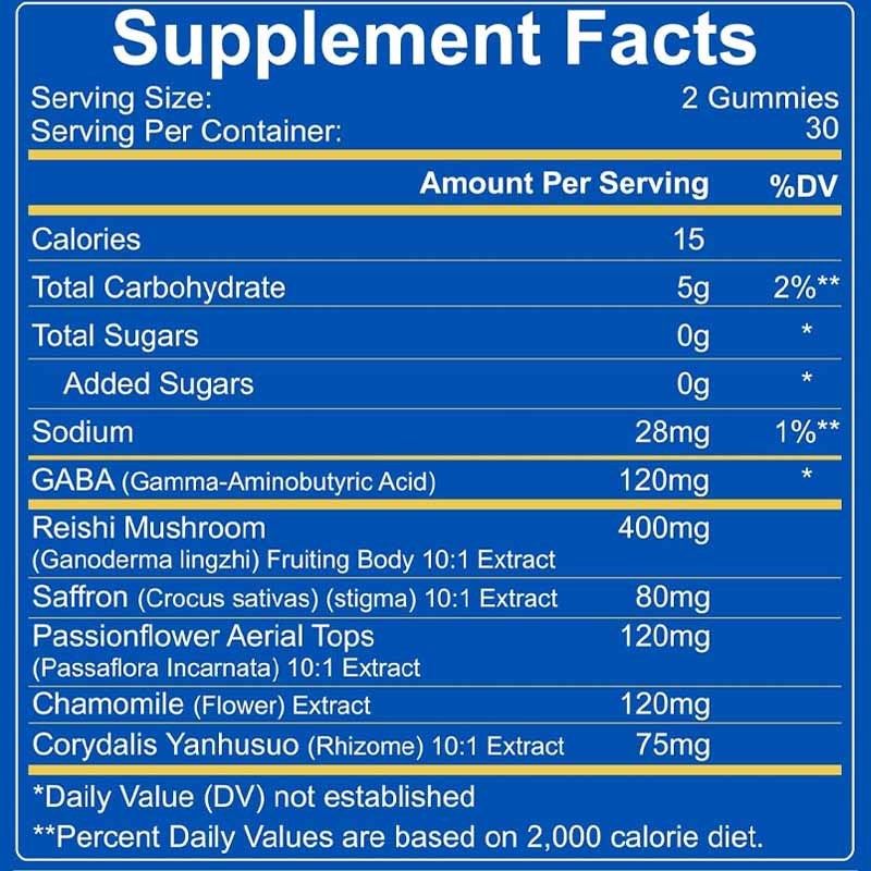 Ingrediente principal:GABA, cogumelo Reishi, açafrão, flor da paixão