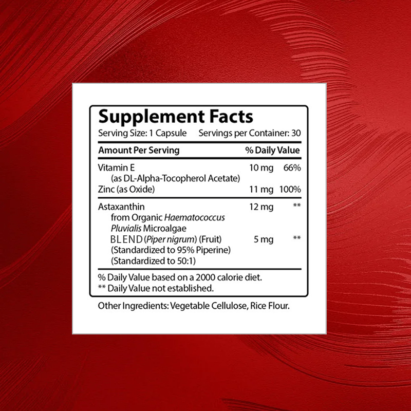 Maximize o Potencial - Vitamina E, Zinco e BioPerine têm propriedades que amplificam os benefícios da astaxantina e aumentam seu efeito.